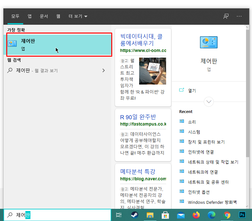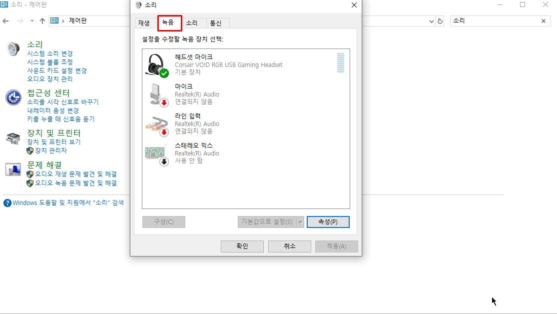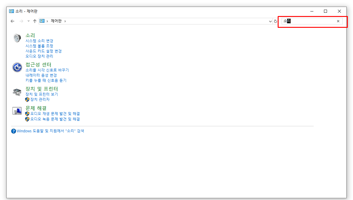 제어판 검색에서 소리를 검색해봅니다.