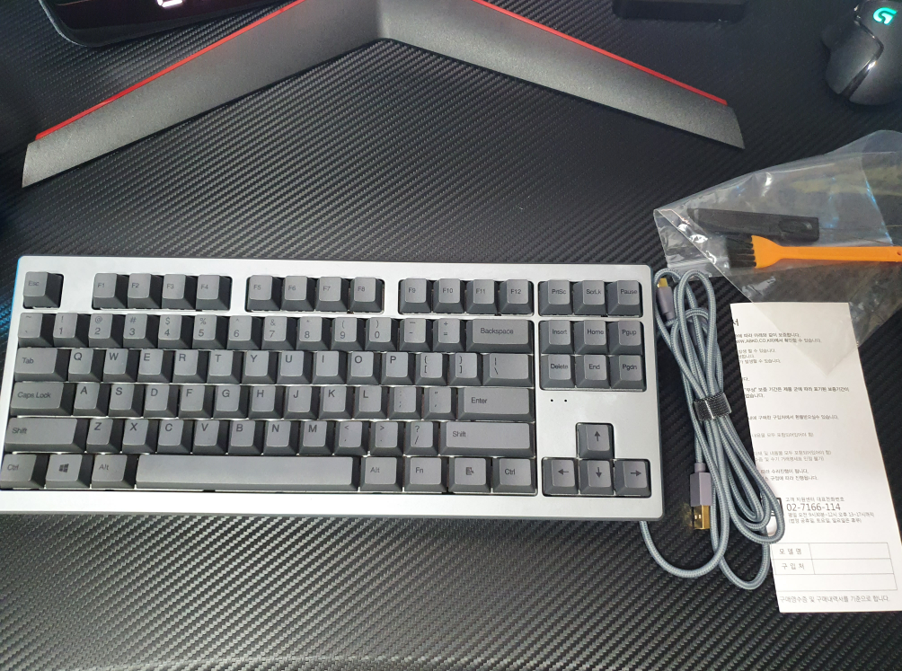 그리고 청소 브러쉬와 키캡 리무버와 보증서가 동봉되어 있었어요.