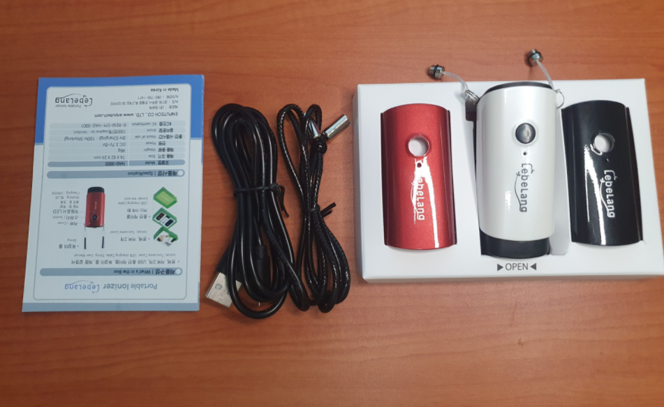 리브랑 목거링 공기청정기 외에 5핀 커넥터와 목거리 줄 그리고 제품사용설명서가 있었습니다.