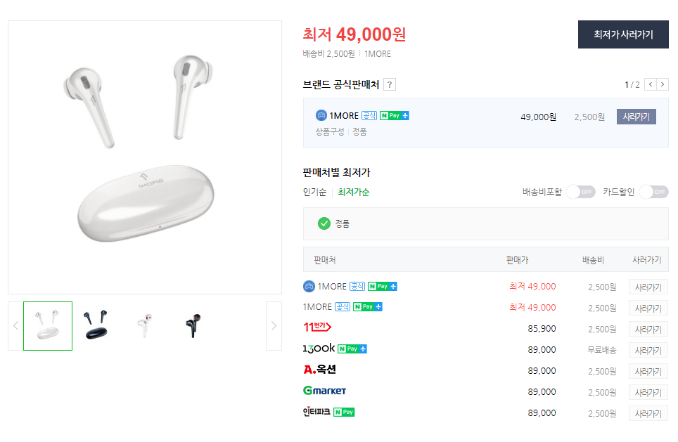 얼마전까지 전부 89,000원에 판매가 되고 있었는데