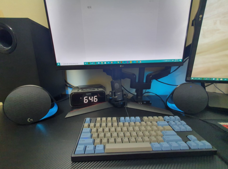데스크 셋업의 화룡정점이랄까요? 전부 멋있는걸로 바꿔도 뭔가 부족한 느낌이 났었는데 블루투스 스피커가