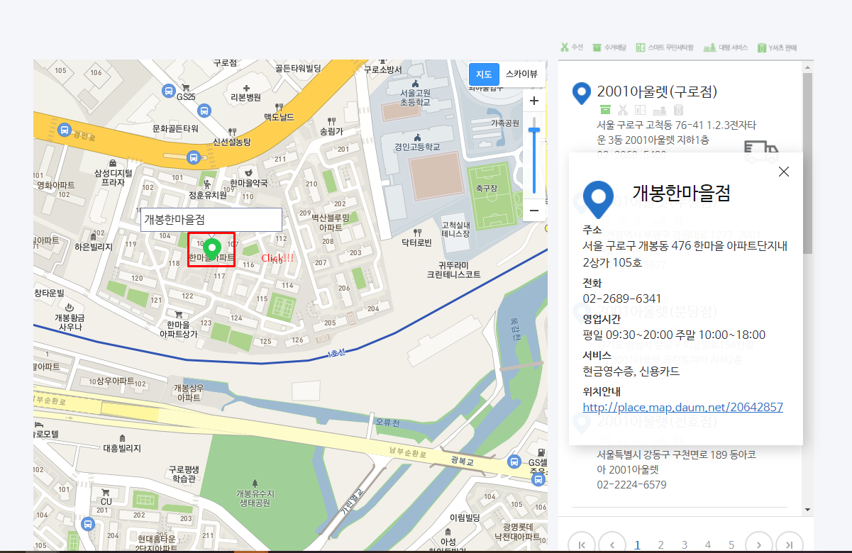 본인의 위치에서 가장 가까운 지점을 지도에서 클릭해주면