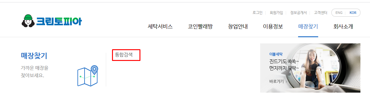 크린토피아 매장찾기 메뉴에서 통합검색을 눌러줍니다.