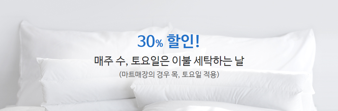 매주 수요일 토요일은 이불 세탁 30%할인 한다는 점 알아두세용 :)