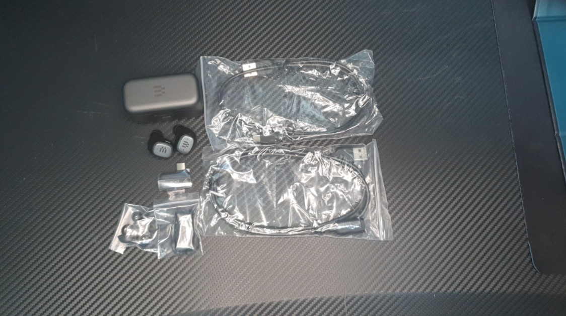 충전케이스, gtw270 이어버드 본체, 충전케이블, 동글이 젠더, 여분의 이어캡이 있었어요.